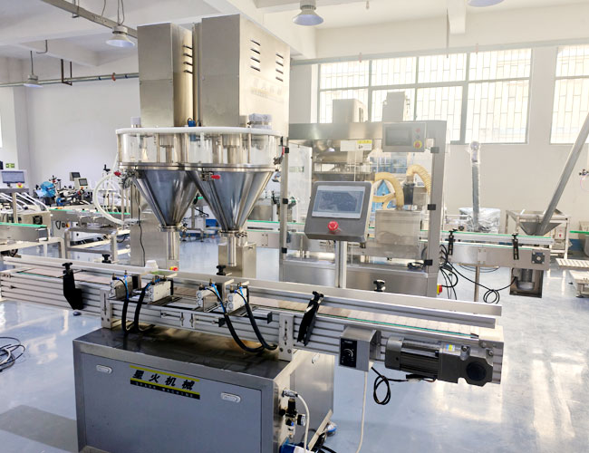 粉劑灌裝機也是一種常見的灌裝設備機型,主要針對粉末類物料的包裝,多適用于瓶、罐、桶等容器,支持100-1000g多規格灌裝需求,采用PLC程序控制,自動完成進瓶、計數、灌裝、輸送等動作。進料系統通過螺旋輸送器將粉劑均勻送入計量裝置,自動灌裝,快速簡單高效,可適用于小批量、多品種的生產環境。