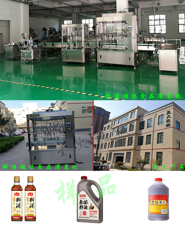 星火廠房展示料酒調(diào)味食品灌裝線、料酒調(diào)味食品灌裝機(jī)展示及料酒調(diào)味食品灌裝設(shè)備灌裝樣品