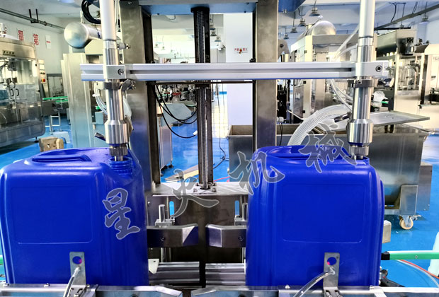 這款高精度、誤差小的雙頭稱重灌裝機,可灌裝10L、20kg、25公斤多種規(guī)格的液體產(chǎn)品,采用PLC控制系統(tǒng)和觸摸屏操作界面,304不銹鋼材質(zhì),不僅防腐、耐磨,而且還易于清潔和保養(yǎng)。該設(shè)備后期可與理蓋上蓋機、壓蓋機、旋蓋機、貼標(biāo)機、碼垛機等設(shè)備聯(lián)動升級,能夠組成全自動定量灌裝生產(chǎn)線,減少人工干預(yù)。該設(shè)備灌裝速度快,灌裝重量準(zhǔn),是一款在食品、化工、日化、農(nóng)藥等多個行業(yè)廣泛應(yīng)用的設(shè)備。