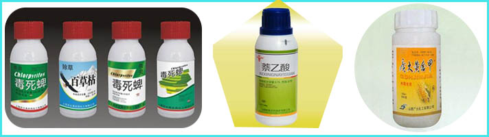 首先,將農藥裝進全自動農藥灌裝機中,然后有傳送帶將農藥的空瓶運輸至灌裝處,然后由全自動農藥灌裝機進行灌裝,緊接著傳送帶運輸自動旋蓋機處,由自動旋蓋機對農藥瓶進行上蓋、鎖蓋工序,然后由圓瓶貼標機對藥瓶進行貼標,然后到成品。